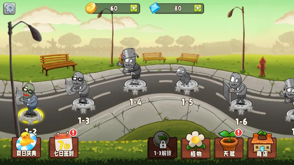 植物选择与塔防建设:玩家可以在穿越关卡前选择并购买想要的植物,用于塔防布局。植物可以通过硬币购买或合成来增强防御力。