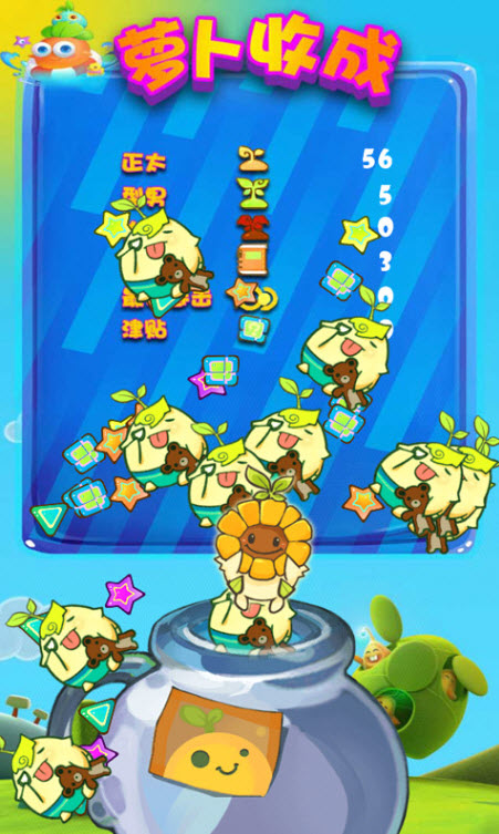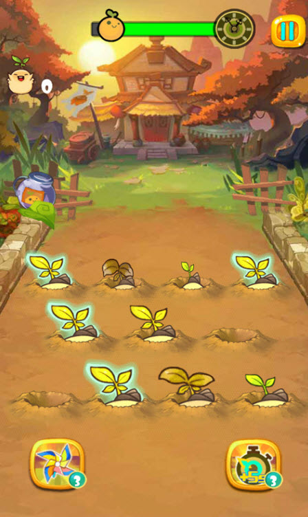 根据地面上叶子的形状和发光状态,判断萝卜的成熟与否,来拔起萝卜,连续拔起成熟的萝卜触发各种道具和稀有萝卜,数量运用道具技能也是你冲击高分,获得成就的助力!