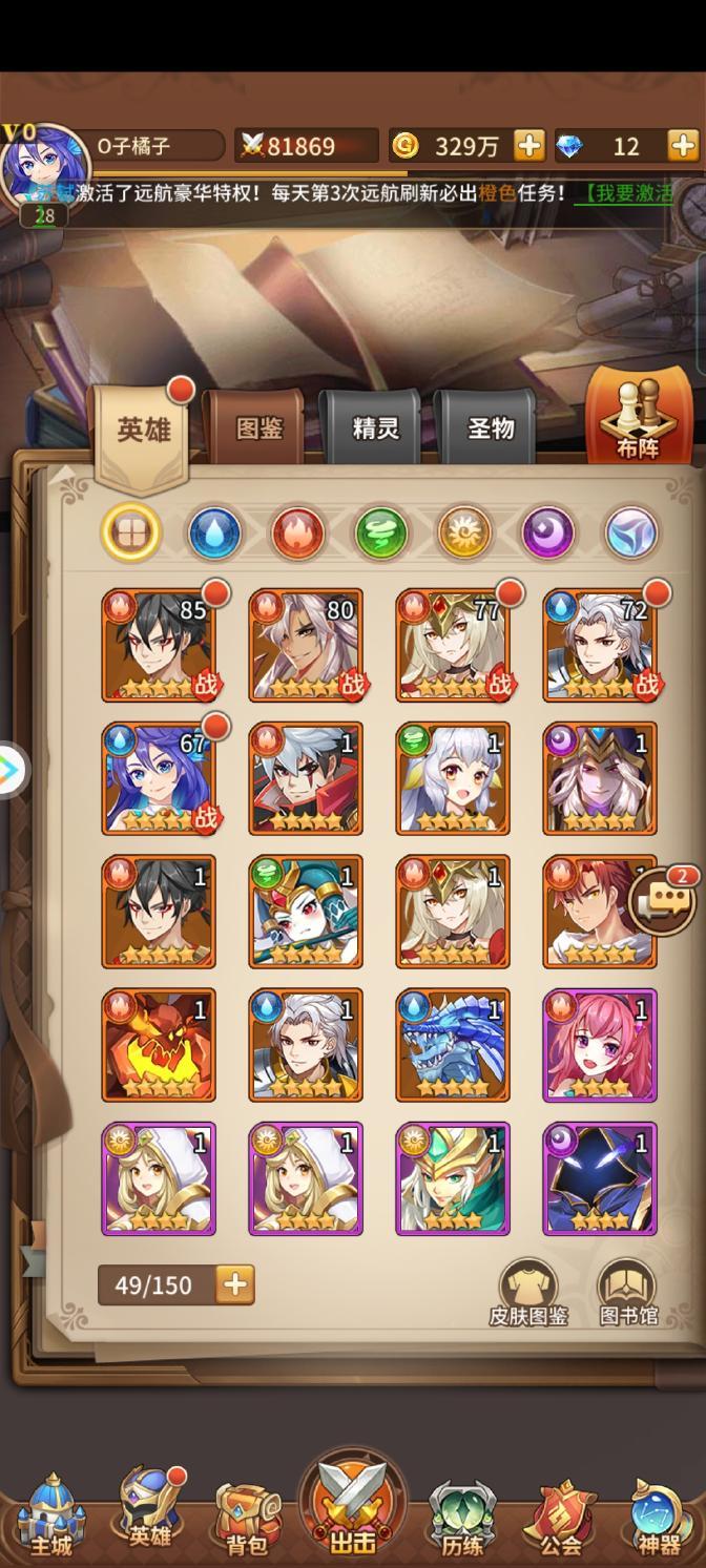 酒神还差三个,准备把梅林换成酒神,这样就弥补了辅助,须佐之男准备退回换成光系战士人马喀戎,全五系英雄啦