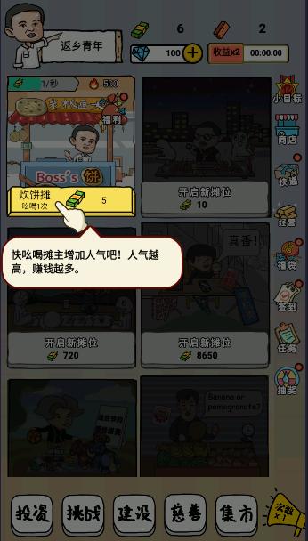 **经营投资:**玩家可以将赚取的收益进行投资,获得更高的收益。