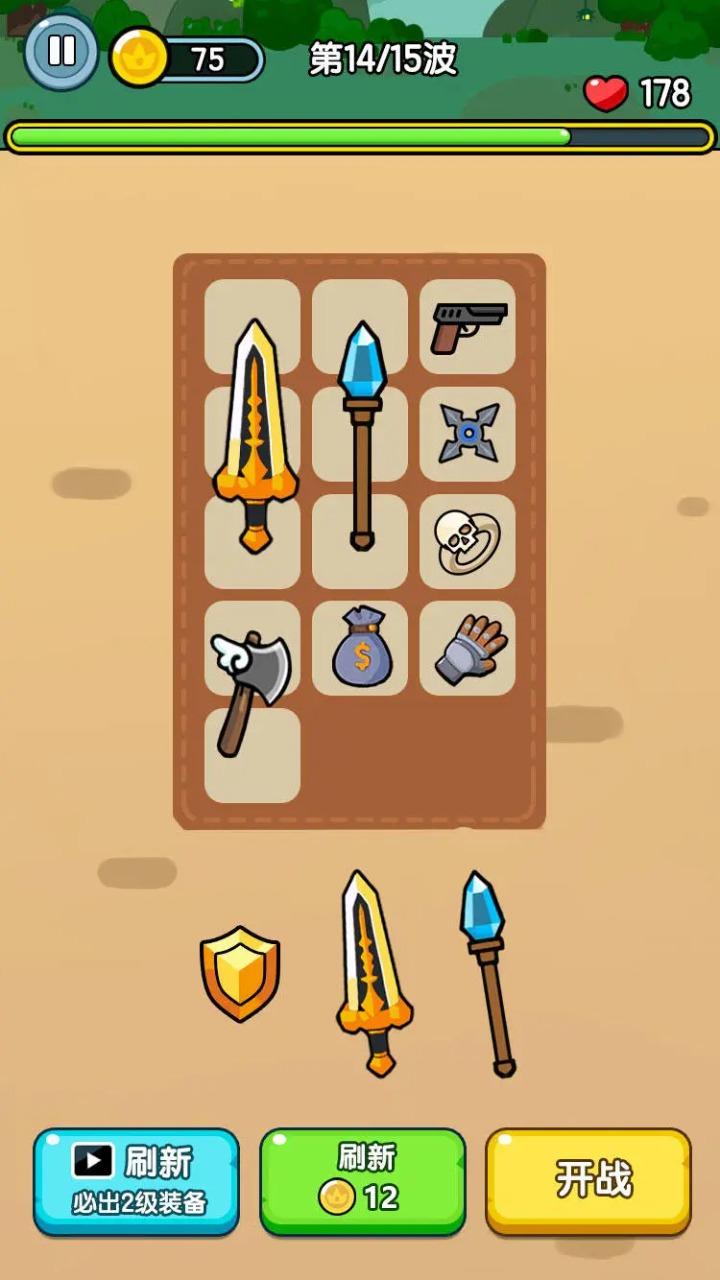 肉鸽塔防和背包玩法的融合产物,微信上好像有个同类型的,自从背包英雄火了一阵之后,背包题材的也见到过几个,大多偏独游。