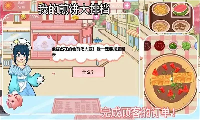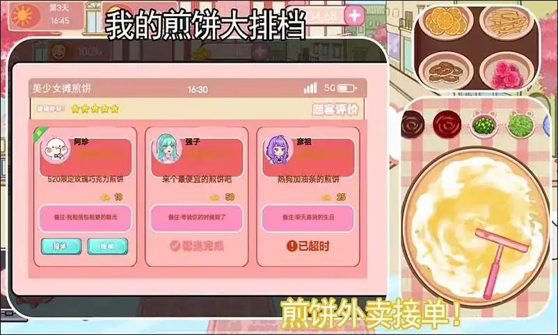 煎饼制作与口味创新:玩家需要掌握煎饼的制作技巧,并通过不断尝试,创新出各种口味的煎饼果子,满足不同顾客的口味需求。