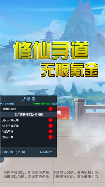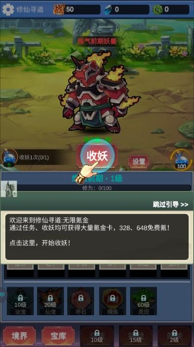 修仙寻道无限氪金(com.Xuanxuan.xxsd)是一个非常不错的收集养成类型的修仙挂机游戏,这个游戏讲述了修仙收集材料,使用材料提升自我的一个游戏,所有的氪金卡随机掉落,游戏解锁免广告获取奖励,道具,货币不减反增。