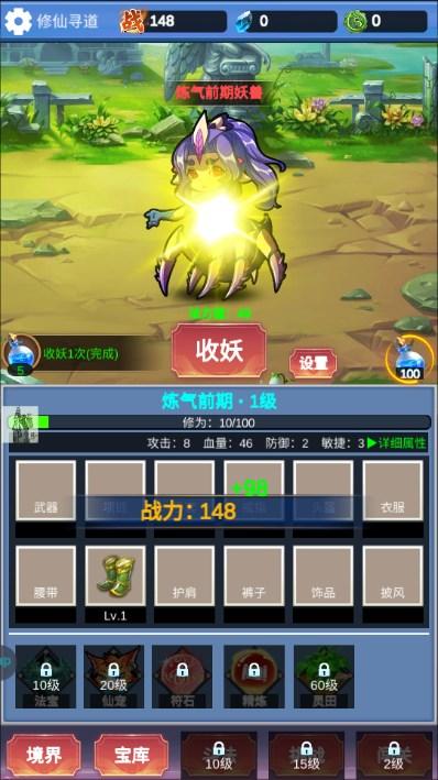 开局把兑换码换完,能看的,拿的都拿完,优先提升境界,这样子装备品质会好很多,灵田最好开完,体力是收怪的关键,没体力就是呆瓜只能看着了。
