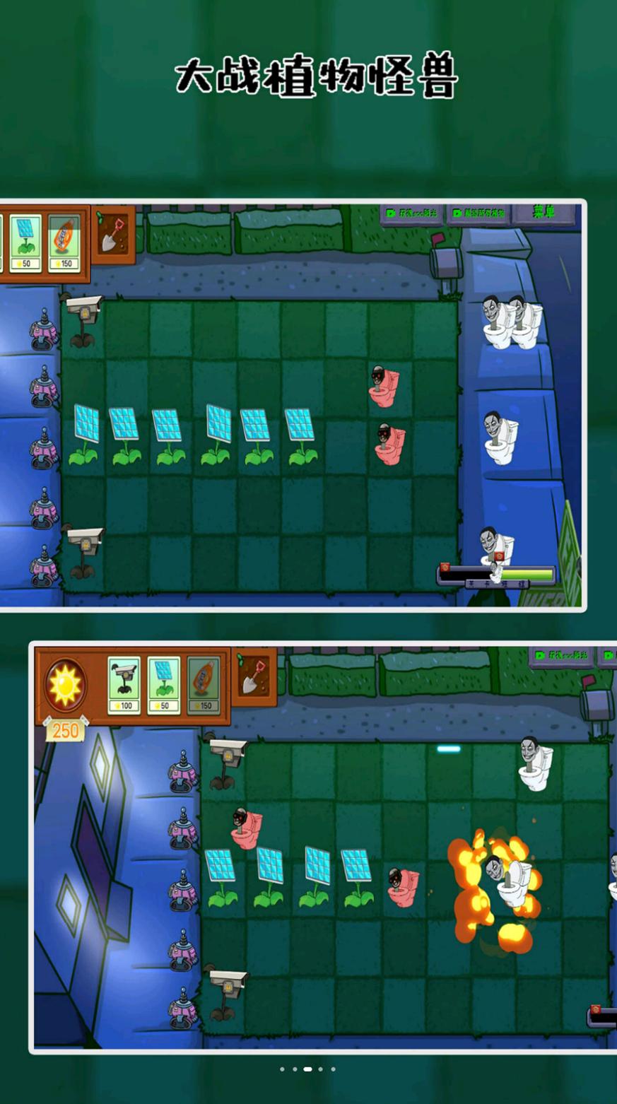 大战植物怪兽是一款充满策略与创意的塔防游戏。在这款游戏中,你将化身为勇敢的监视人,肩负守护家乡的重任。你需要巧妙利用招募的炮塔,与源源不断的马桶僵尸展开激战。