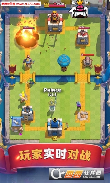 《腾讯皇室保卫战》将策略塔防、竞技以及集换式卡牌玩法很好的融合在一起,游戏内沿用了COC的大部分英雄角色,看起来格外亲切。游戏采用的是实时在线匹配PVP玩法,每个玩家都有1座皇城和2座炮塔,拖动卡牌召唤英雄开始推塔,谁在规定时间内直接摧毁皇城或比对方多摧毁炮塔谁就获胜。