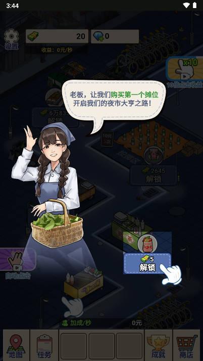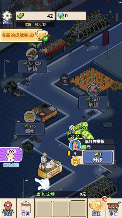 夜幕降临,商业斗争才刚刚开始,谁才能在夜市中脱颖而出,变成夜市里最有钱的仔。从零开始赚钱,运用你的商业头脑,合理分配商业资源,通过升级、解锁夜市中的餐厅,打造一个属于你的商业帝国。不断点击商店快速赚取财富和金钱,从而成为夜市中的商业投资鬼才!