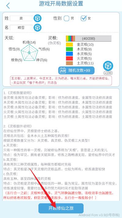 开局建议:广告刷新出天灵根(什么属性灵根都可以。五维随便,都能吃丹药到大境界上限。),当然伪灵根也能玩毕竟进阶炼虚五行合一就都一样了。