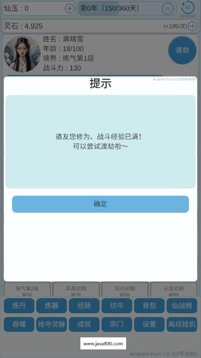 4、然后即可开启渡劫修仙的玩法
