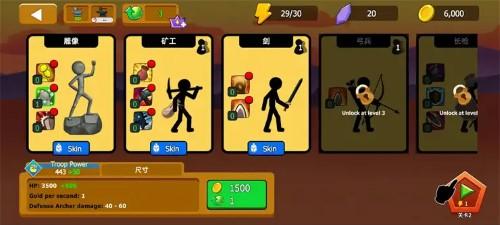 资源管理与升级系统:游戏中设有资源采集和升级系统,玩家需要合理管理资源来升级自己的火柴人士兵和防御设施。通过击败敌人或完成任务,玩家可以获得金币和经验值,用于提升火柴人的属性、解锁新技能或升级防御塔等。资源管理的好坏将直接影响玩家的战斗力和战略部署。