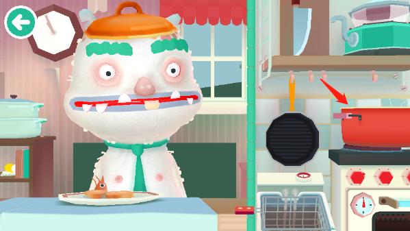 10、之后点击左上角箭头回到等待食物的角色这里,把食物投喂到他的嘴巴里,吃完之后即可。