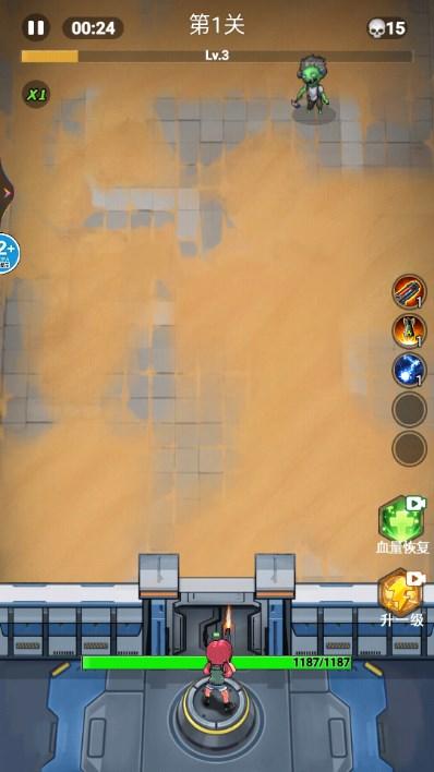 2.玩家在游戏当中的主要任务就是控制这些塔防角色,不停的向对面进击的僵尸进行射击。并且它也是一个类似于关卡制的游戏,只不过它是用每一个级别来表达的,每当升一级之后就会给你一个属性,让你去选择。而玩家在选择道具属性的时候,也是需要根据对方僵尸的属性来做选择的,所以也是存在一定的策略性在里面的。