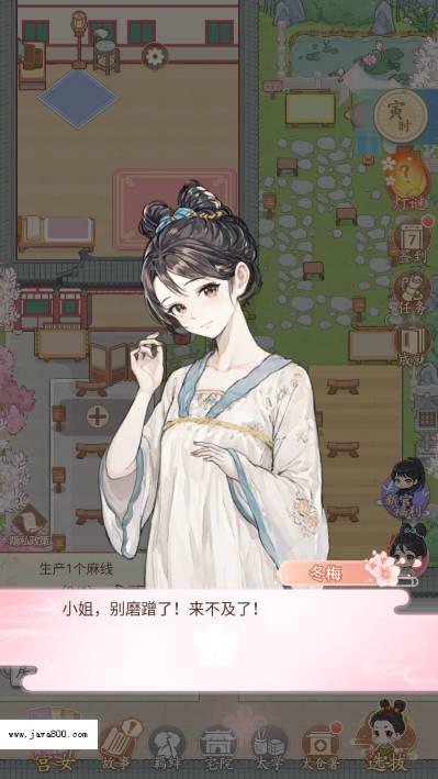 “玩法丰富多样,充满挑战与乐趣”:游戏不仅有着丰富的剧情和角色互动,还融合了经营、养成、解谜等多种玩法元素。玩家需要综合运用自己的智慧和策略,才能在宫廷中立足并发展壮大司织房。同时,游戏中的随机事件和隐藏任务也为玩家带来了更多的惊喜和挑战。