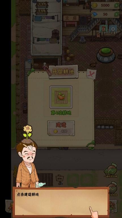 2、根据任务提示,开垦出第五块土地,将仓库升级到二级。