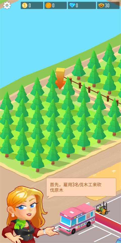 为了可持续地收获树木,您需要雇佣植树者来种植您的森林!购买更多的土地来保护他们!训练你的伐木工人成为熟练工人,这样他们就能高效地收获原木。