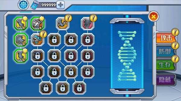 1、在游戏的实验室里头,能够给变异狗加入不同的强化基因进行改造,增强它各方面的能力,包括攻击力、生命值、防御力等等.改造完毕之后就能够让它参与战斗了.