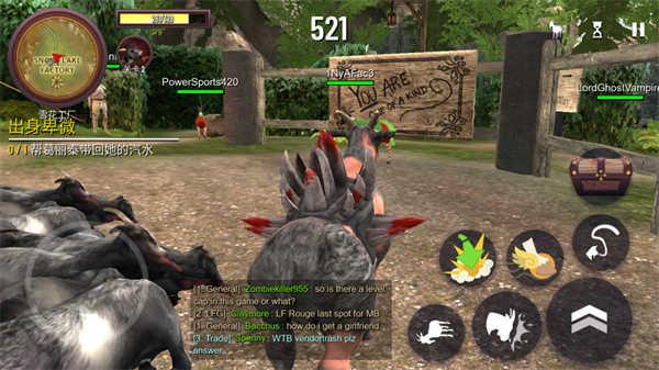3、游戏采用横屏玩法,左手控制山羊的走动,右手控制视角及各种攻击操作;