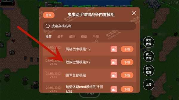 1、下载安装好铁锈战争mod大全整合包,打开游戏,在主界面左上角点击虫虫助手的圆形浮窗。