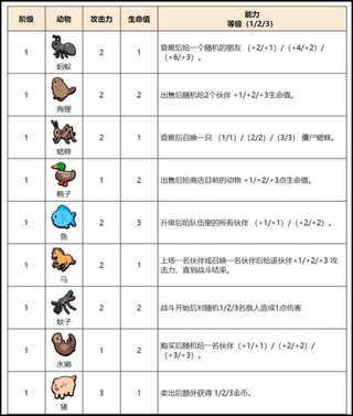 Super Auto Pets(小动物自走棋)随从图鉴介绍