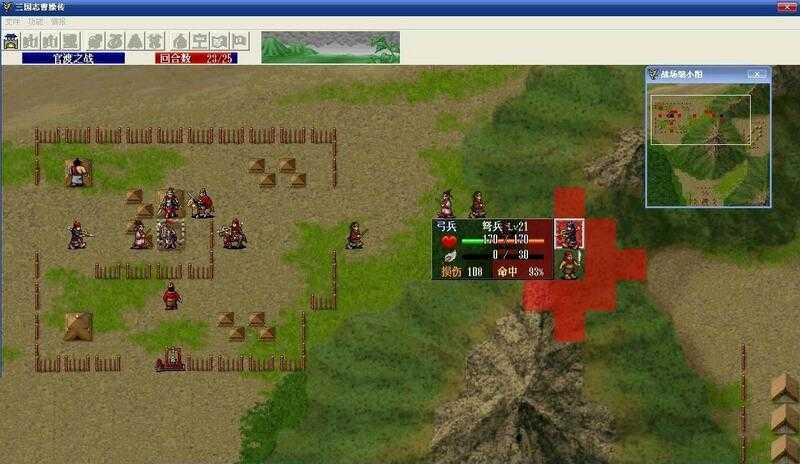本回合继续小补给,等待左侧黄巾贼继续攻击我,然后获得击杀经验。友军回合时,刘备会走到我的左上方攻击黄巾贼。刘备攻击黄巾贼的命中率为98,经过大量的的SL,刘备面前的黄巾贼终于活了下来。张梁也醒了,和张宝一起放毒烟。