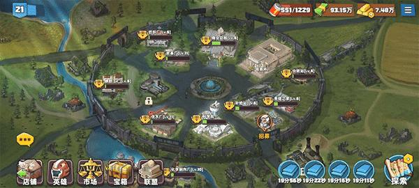 城市:能够限制员工、英雄的等级上限,需要用钱来升级。