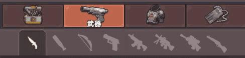 武器:按照图片顺序,分别为:利刃, 钝器, 弓弩, 轻武器, 步枪, 重武器, 狙击枪,散弹枪。