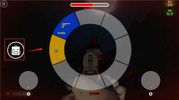 6、在右边这里有一个开枪、瞄准以及换子弹,玩家可以根据自己的需求进行使用。