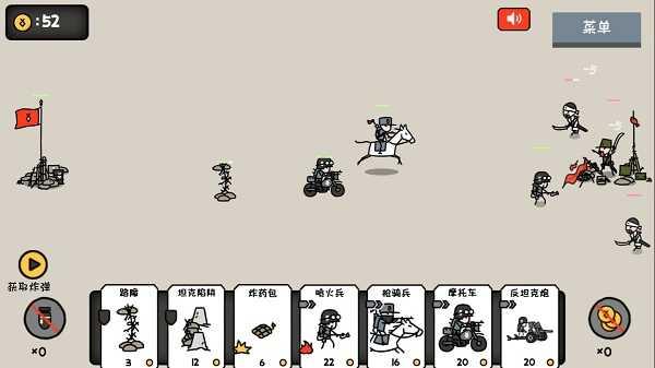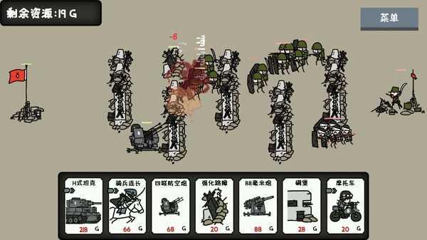 玩家防守的还有各种防御塔系列,我觉得防御塔中的堡垒把那个中间的四个格子各走一个,基本上对方就打不过来了。然后机枪阵地争对步兵来说非常的凶,一枪可以打一点二的生命值,连续四场,而步兵的生命值最高也就是15点左右。