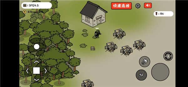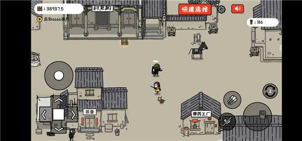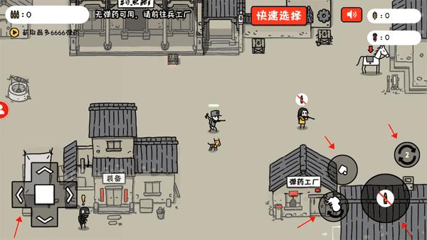 之后我们会看到第一个刷子弹的地方,两个箱子共计20颗子弹,这里的每一个靶子打掉之后都会掉10颗子弹,在人物停止行动后,会冒出快速选择这个按键,点击之后就会回到主页面,再次进入就可以重新拿到子弹(不包括打靶掉落的子弹!)