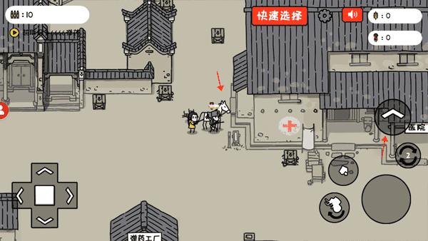 6、玩家跟着红色箭头指引找到一匹马,靠近马右边会自动显示向上的箭头,用来上马。当你想下马同样点击右边的向下方向键即可。