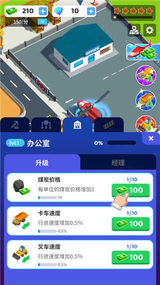 2、您可以购买各种先进的采矿设备,好的生产效率可以让你赚更多金币,有利于公司发展,可以解锁不同的玩法模式。