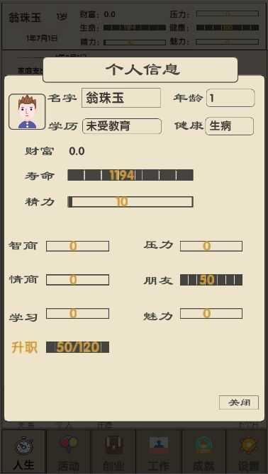 3、属性值会伴随玩家的一生,在经历人生不同阶段过程中,要随时注意其变化。