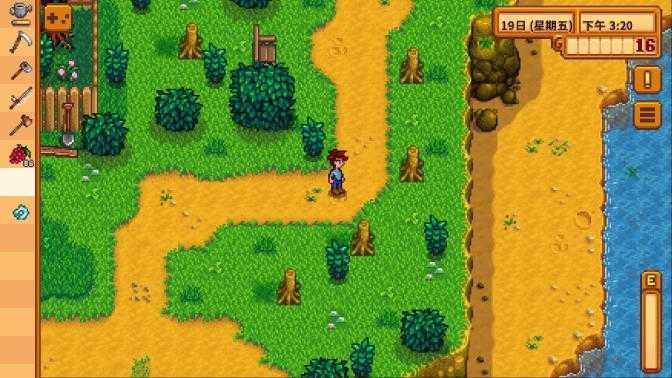 使用斧头,十字镐和镰刀除去农场中的木材、石头,割去杂草和灌木,清理出大约15个地格。