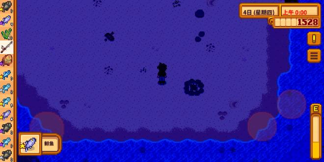 山顶农场:有很多悬崖,西南角有一片区域专门用于开矿,里面还会出现特有的晶洞。挖矿河边农场地图上有很多水域…对于农作物和动物而言空间有限。玩家可以在农场里尽情钓鱼,而这里的种类和小镇上出现的鱼一致。(特殊技能—钓鱼)
