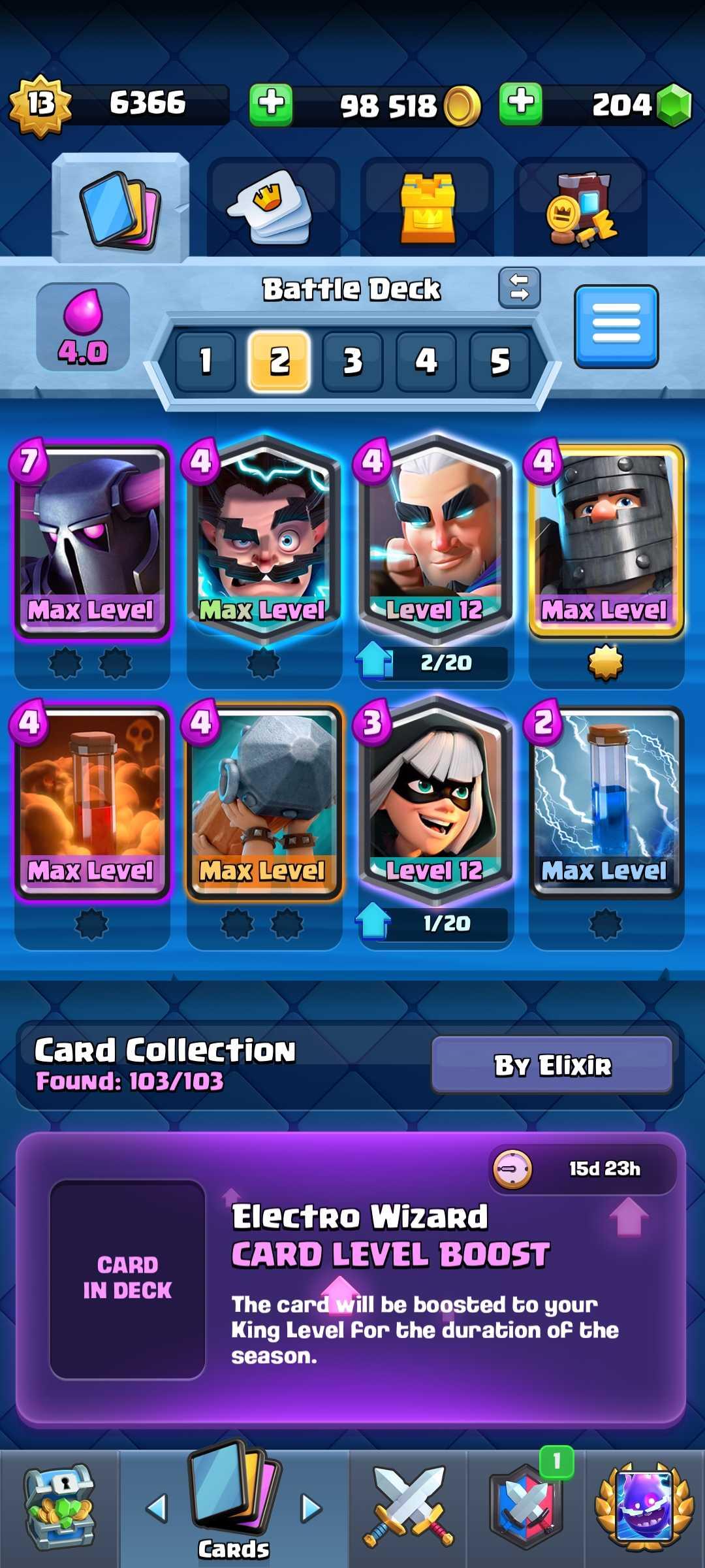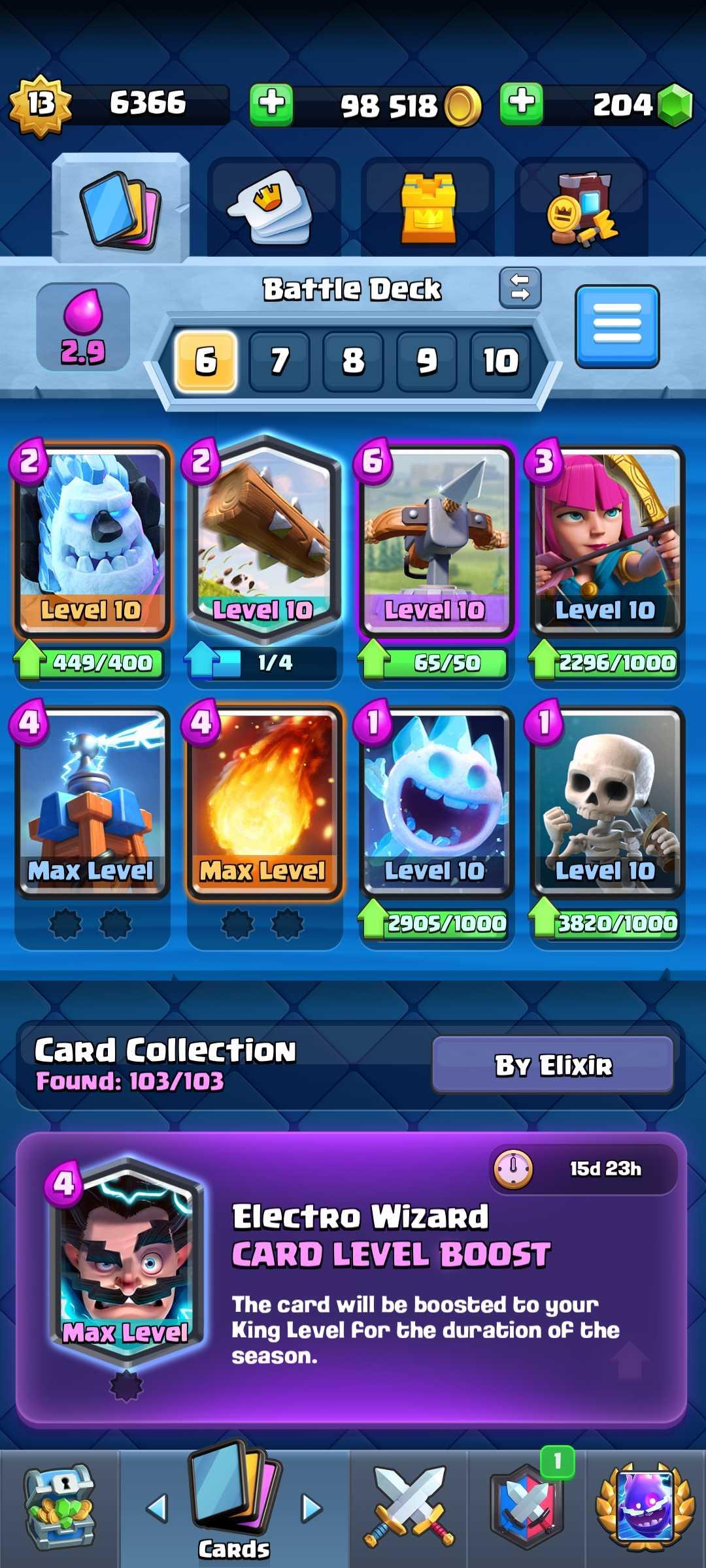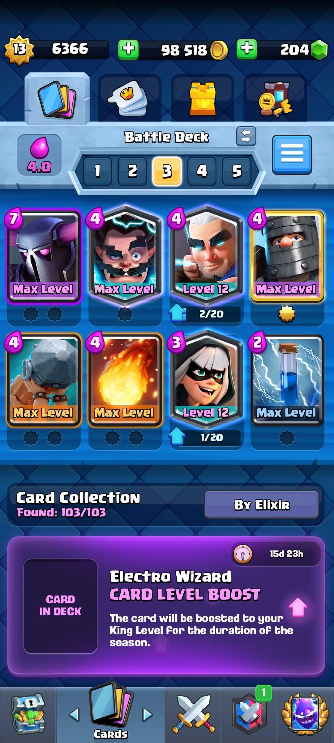 3.4.6狂暴电车的组成是没有伤害类型的法术的,这种卡组也不多,但是既然存在,那么就说明卡组的构成是相对均衡的,虽然没有伤害类型的法术切后排,解人海,打控制,斩杀公主塔,国王塔等,但是巨人,亡灵海,法师,小皮卡,黑王子,电磁炮这些组合,节奏到位狂暴法术一撒对面很难反制,并且把握了节奏巨人通常可以碰到塔
