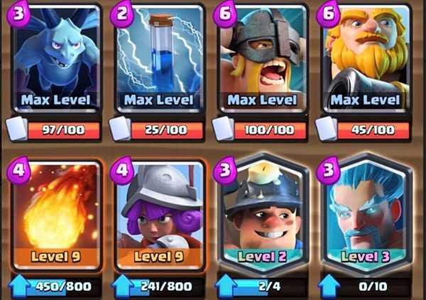 现在说说这套牌的核心理念,这套牌除了精英野蛮人以外等级都可以不高(反过来说你一定要尽快把精英蛮升起来,越高越好,精英蛮的成长比例非常高,等级越高越*怖,但好在精英蛮是白卡好收集。),很多人看了我这个牌都有一个反应,完全没什么防守的牌啊?