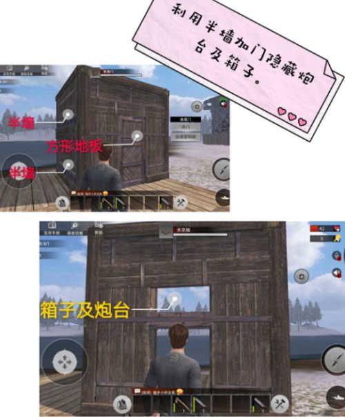 很多人不喜欢半墙,认为它浪费空间和资源,其实不然。第一,半墙可以制作屋顶的防炸层,很隐蔽但效果好,让入侵者难以从屋顶渗透进来。同时夹层内可以放置炮台,起到更好的防守效果。第二,利用半墙加单扇门制造错位,开门后,领地柜所有者可以loot到箱子,而入侵者则不能。第三,利用半墙可以在有限的高度制造更多的储物空间,让单个炮台覆盖到更多的箱子。