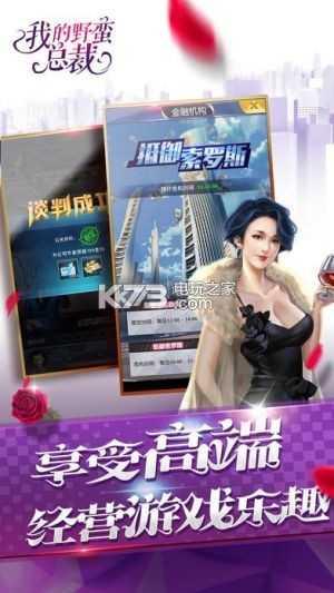 我的野蛮总裁是一款非常火爆的商战手游,这里的每一个任务建模都非常的精致,操作起来很容易,分分钟就能感受一把经营的乐趣,还有各种美女,你可以任意的撩,收获事业成功的同时也可以收获一份爱情,真的是超级好玩,各种活动随心参加,展现出自己的经商本领!