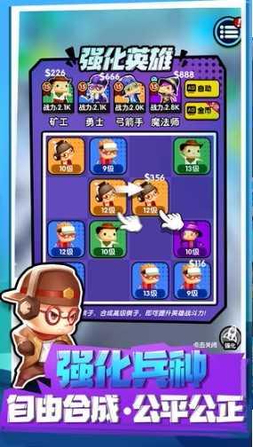 2、合并+空闲以升级士兵,通过合并相同级别的士兵进行升级,或者只是闲置并等待直到重新打开。