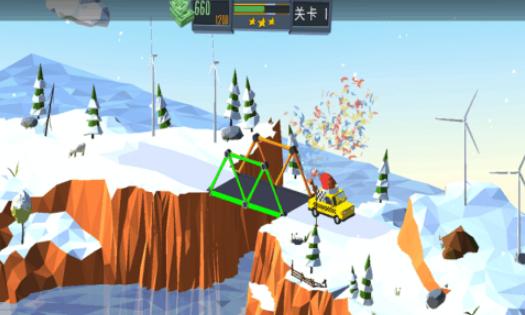 2、动动手指完美造桥,工程建筑师打造的每一座桥都需要让汽车通行,这是最后的测试