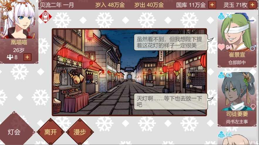 1、表面上,这是一个你扮演开国女帝想办法平衡朝堂,制约后宫,将自己的皇朝传至万代的养成游戏。