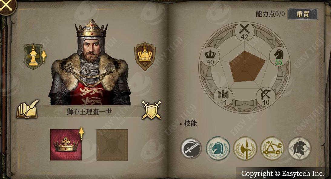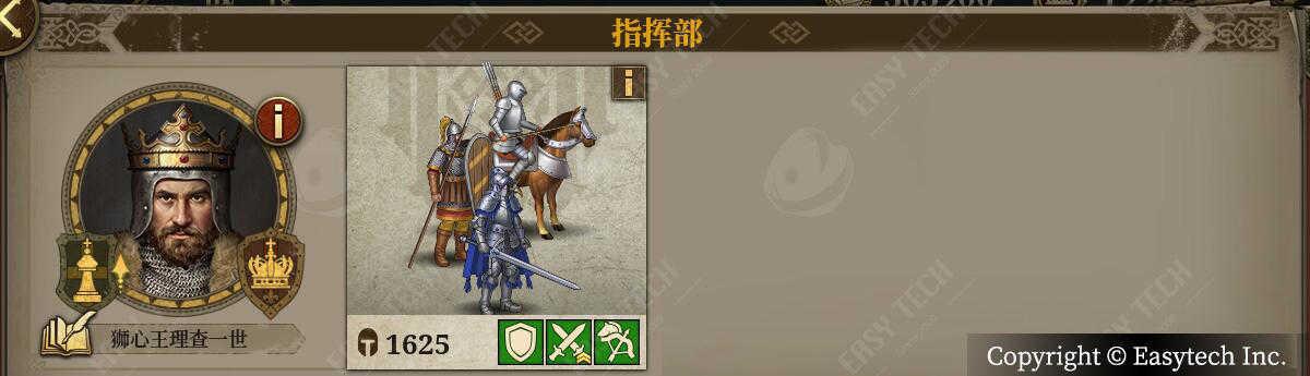 此次我们延用了前作军衔和爵位的部分设定,再根据中世纪的时代背景进行了调整,让其更符合时代特点。《欧陆战争7:中世纪》中将领属性分为步兵能力、骑兵能力、弓兵能力、内政能力和士气。内政主要影响城市产出加成以及任命为行政官时国家外交、内政加成等。除内政能力之外,其余4项属性的增加可以提升兵种的攻击力和士气。