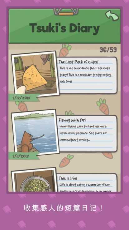 游戏玩起来比较自由,可没有时间限制,你想去干嘛都可以,只需要注意胡萝卜成熟的时间去收取就可以了,还可以购买玩具,每完成一件事情可以写日记,乡村的生活原来这么美好,跟着Tsuki一起来体验吧。