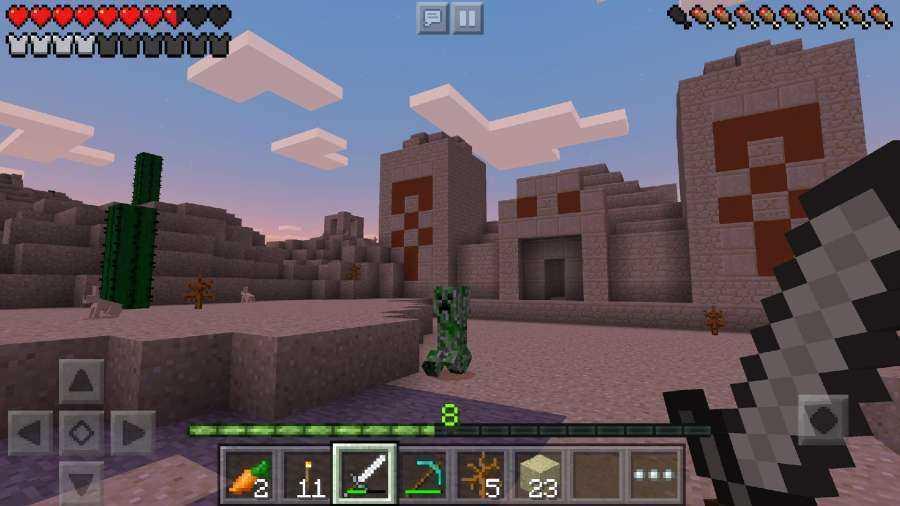 生存模式:探索世界、收集资源、合成道具、提高等级、补充体力和生命值。