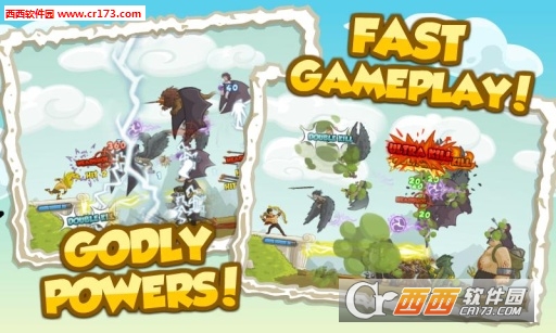 《诸神之战》是一款策略塔防类游戏,游戏玩法类似[愤怒的小鸟]。以希腊神话中,三位仙宫俊杰的视角展开,不顾一切,保卫奥林匹斯山,玩法非常简单,只要用一根手指头控制希腊英雄,在屏幕上划线将武器投向想要毁坏神殿的敌人即可。