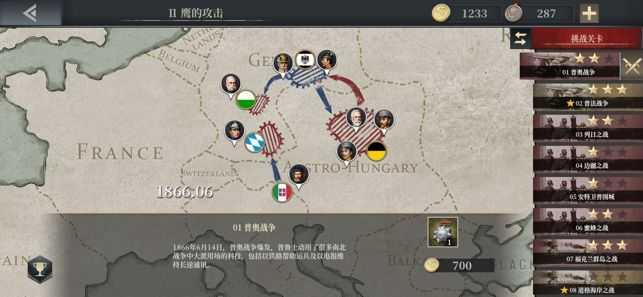 点开法国章节挑选战役,可以看到,战役有简单的进攻路线指导图以及主要将领(和前几作一致)。值得注意的是:关卡数量似乎被减少,第三关就是金子塔了,参考欧四,也许会减少部分关卡