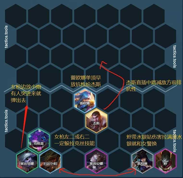 4、针对性出装。为对付前排难过的熬夜波比,女枪的电刀能减抗性、巨杀打坦,8级有条件上个杰斯,能减双抗,万一有三星卡特,兴许还能控一下。(2星布隆和杰斯都留着,看场面情况和需求上)