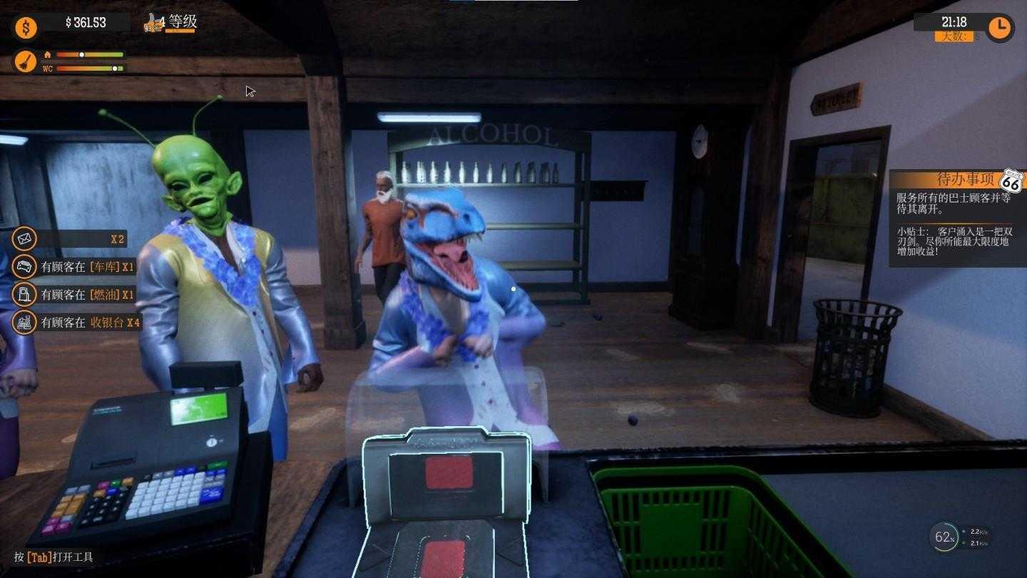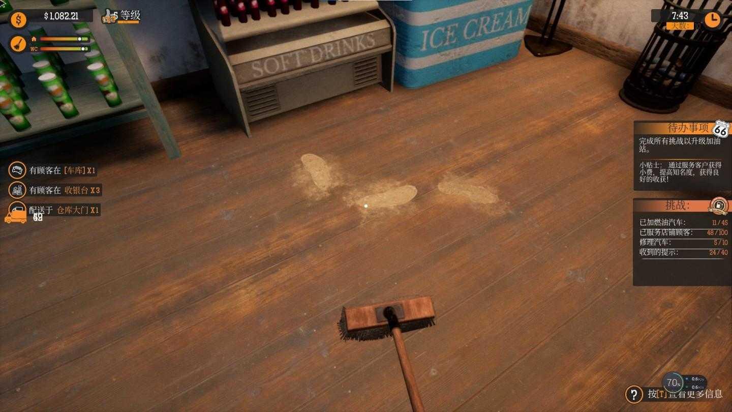要时刻注意地板卫生和垃圾桶卫生,尤其是垃圾桶卫生,一不注意垃圾桶就会满,臭气熏天,客人会在第一时间直接给差评,扣除加油站的等级分,当我们只需要用背包的垃圾桶左键一下商店里的垃圾桶就好了,垃圾袋落在地上就不会减少我们的卫生分的,可以不用急着扔。