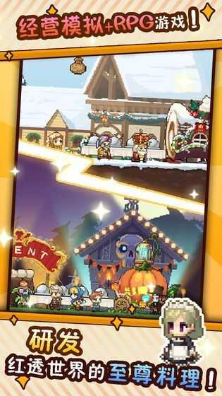 很久很久之前,魔王来袭,生灵涂炭,世界开始了漫长的战争与逃亡。魔王坚信人类的力量源自于美食,于是在世界上抹去了料理的存在。失去料理的人类大多无法继续生存下去,而幸存者分散在世界各处,期待料理再一次将他们的生活点亮。游戏以入手角色,研究美食,制造出更多美食吸引客人,经营店铺,赚取金币,超多玩法等你体验。