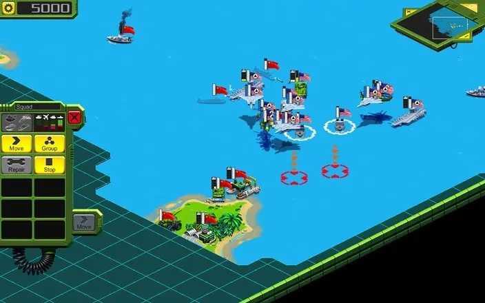 3、在浩瀚的海洋和岛礁中,建造自己的军队和装备,与敌军展开陆海空三军的较量。